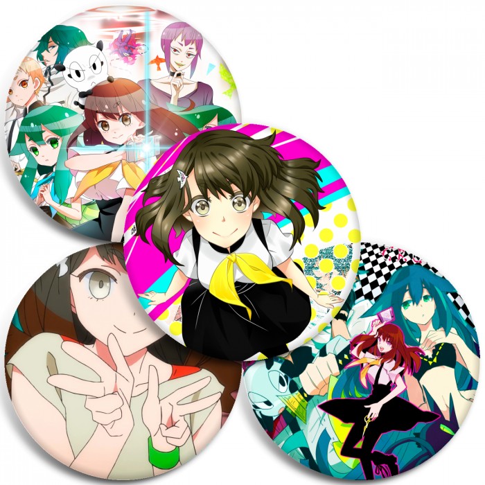Несколько видов значков с персонажами вселенной Гатчамен: Общество.