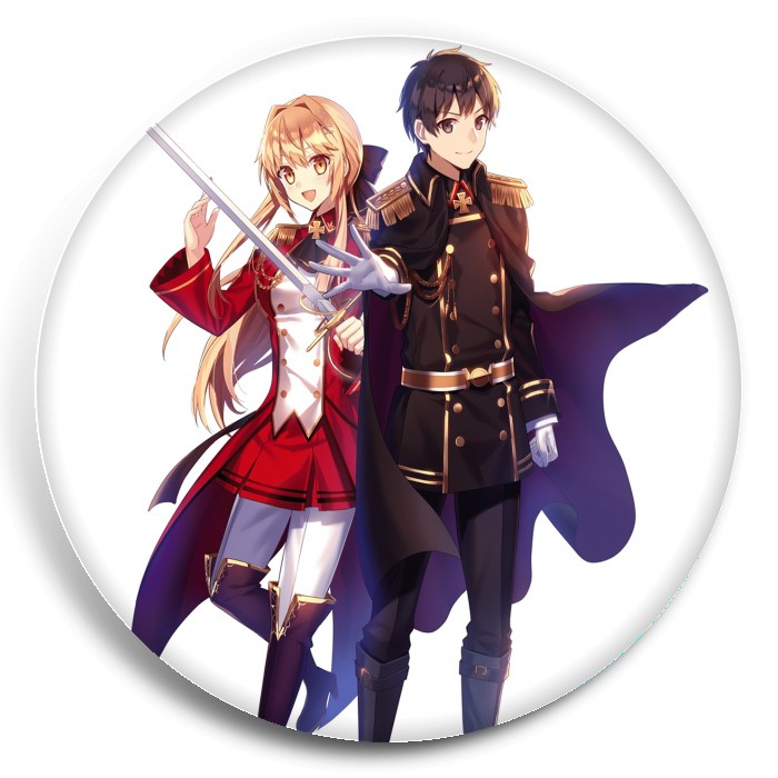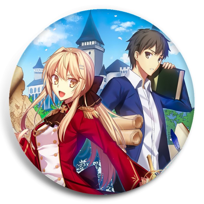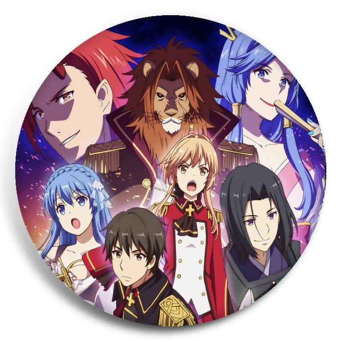 Несколько видов значков с персонажами вселенной Герой-рационал перестраивает королевство.