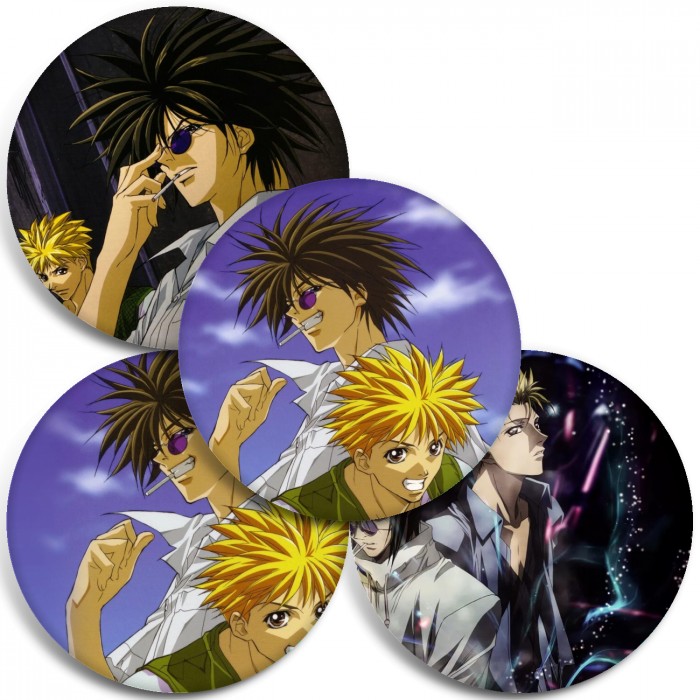 Несколько видов значков с персонажами вселенной Агентство по возврату утраченного.