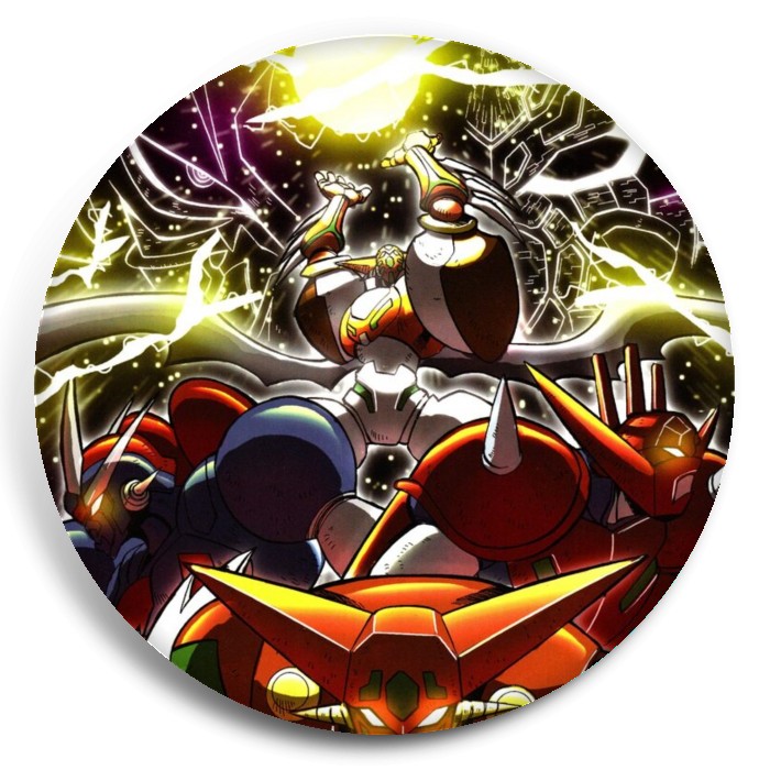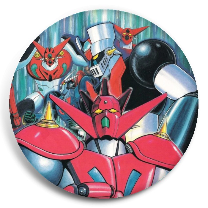 Несколько видов значков с персонажами вселенной Робот Геттер.