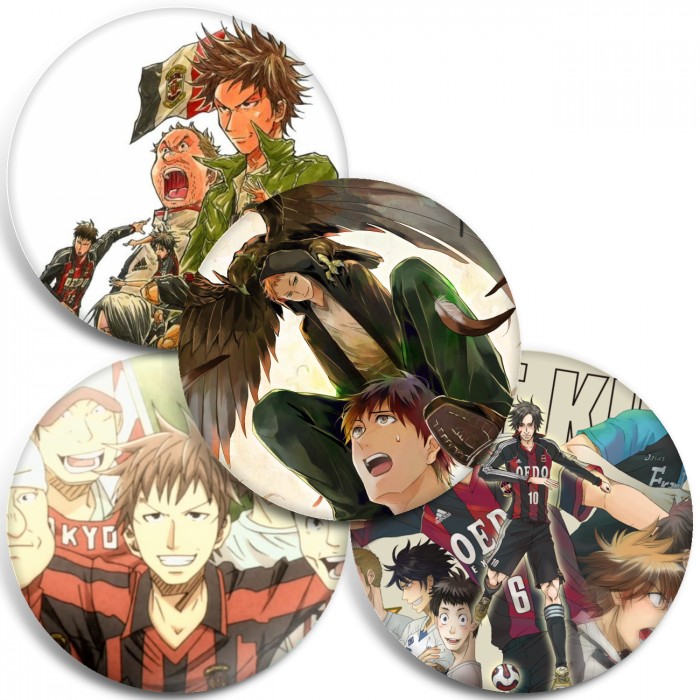 Несколько видов значков с персонажами вселенной Вынос гигантов.