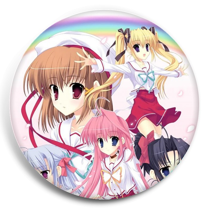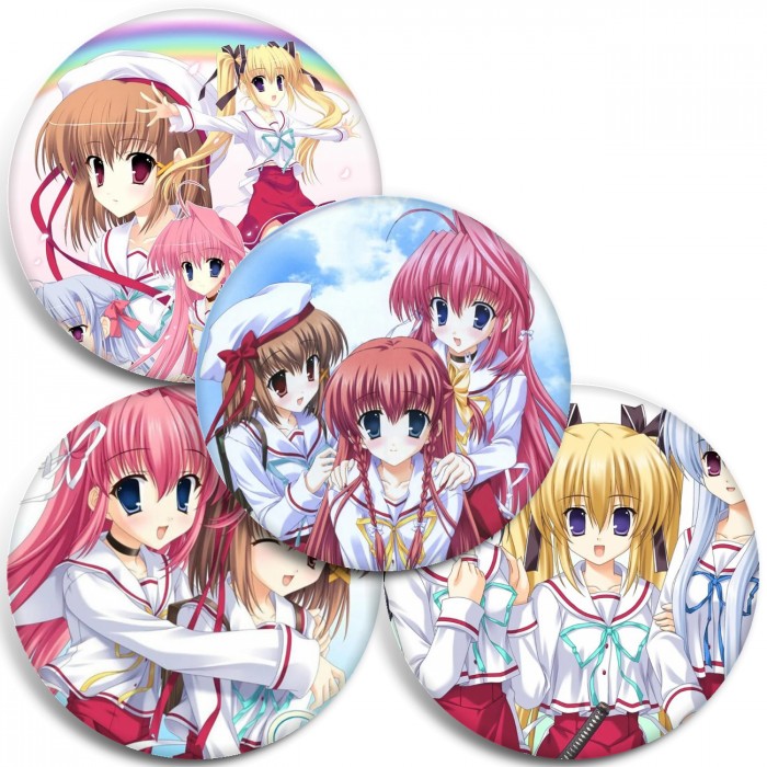 Несколько видов значков с персонажами вселенной Дар: Вечная радуга.