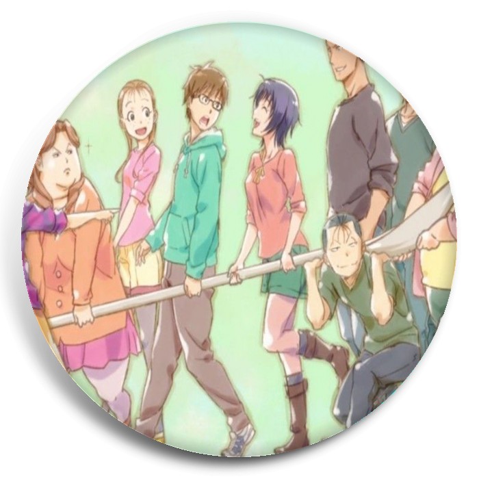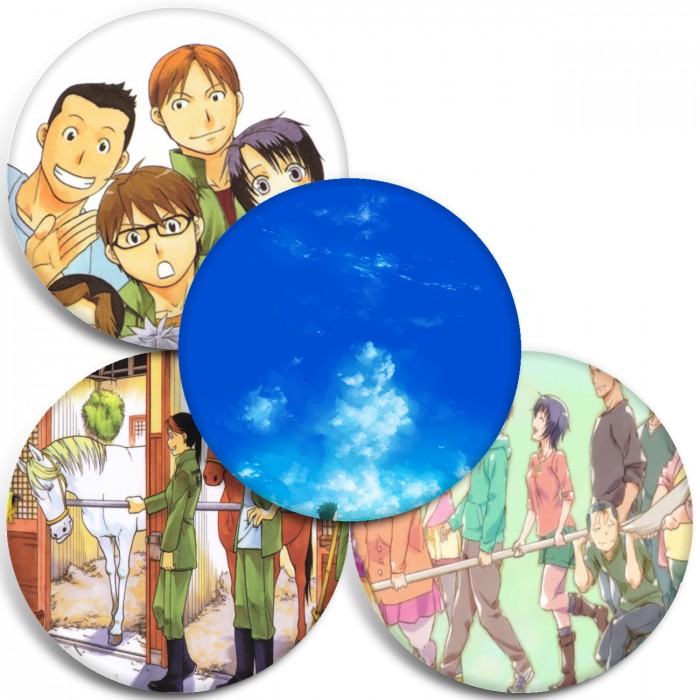 Несколько видов значков с персонажами вселенной Серебряная ложка.