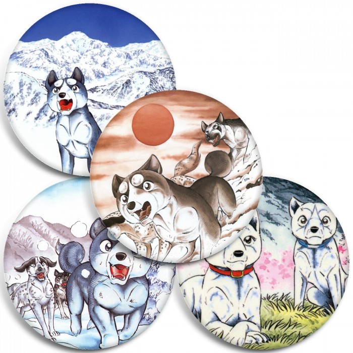 Несколько видов значков с персонажами вселенной Легенда о Серебряном Клыке Уиде.