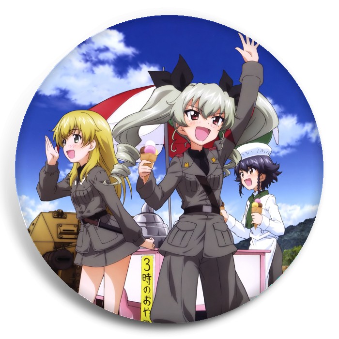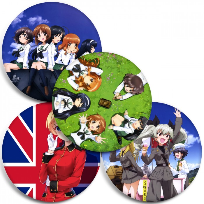 Несколько видов значков с персонажами вселенной Девушки и танки.