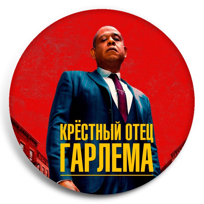 Несколько видов значков с персонажами вселенной Крёстный отец Гарлема.