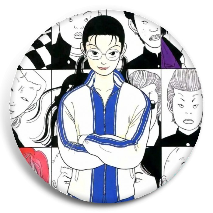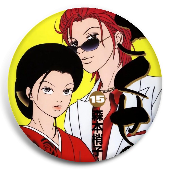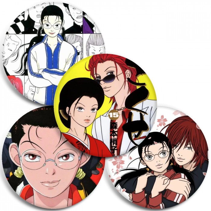 Несколько видов значков с персонажами вселенной Гокусэн.