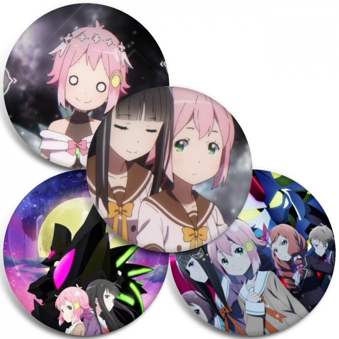 Несколько видов значков с персонажами вселенной Гранбелм.
