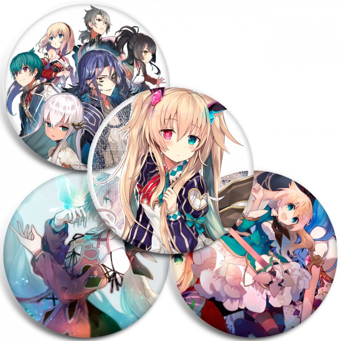 Несколько видов значков с персонажами вселенной Заметки Гримм.