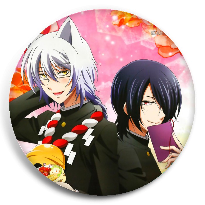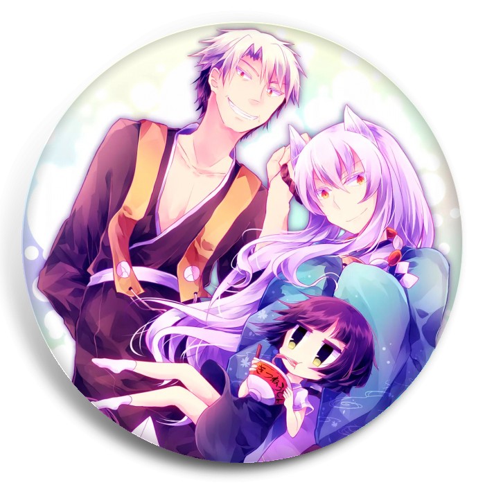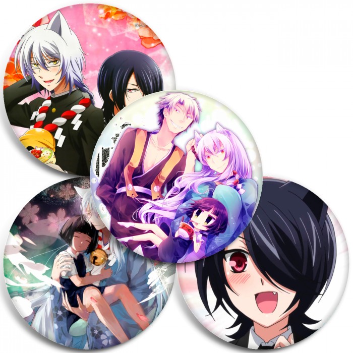 Несколько видов значков с персонажами вселенной Загугли это; Коккури-сан!.