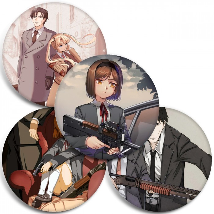Несколько видов значков с персонажами вселенной Школа убийц.