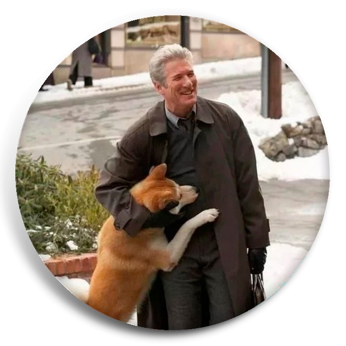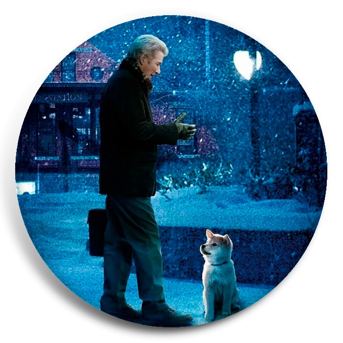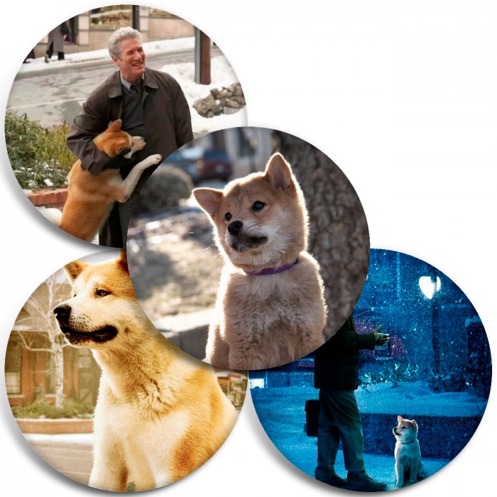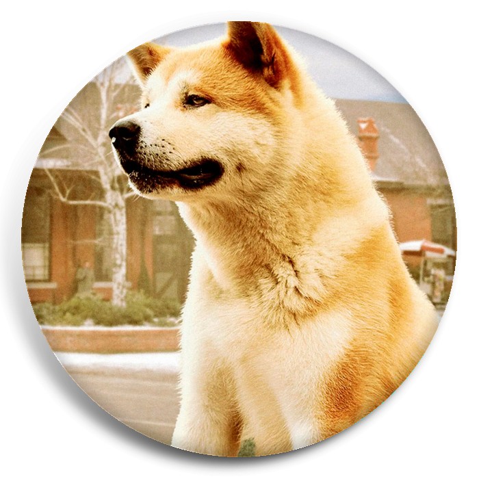 Несколько видов значков с персонажами вселенной Хатико: самый верный друг.