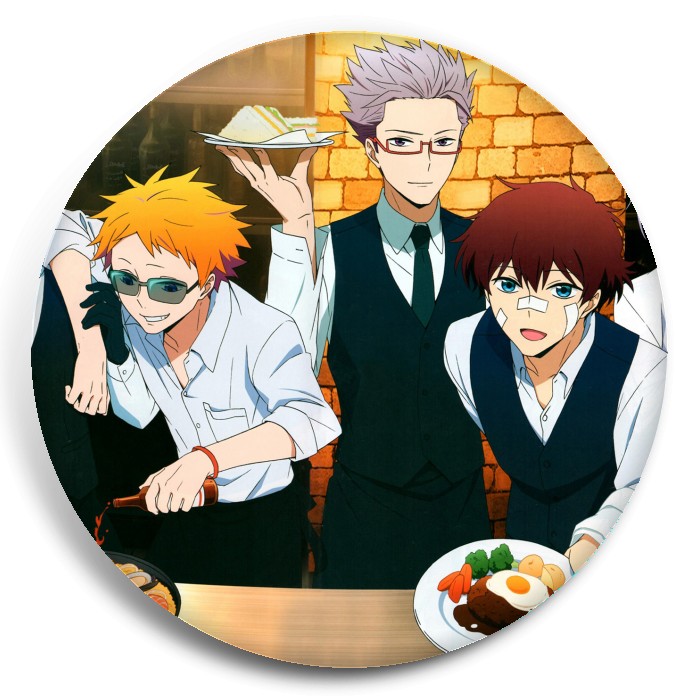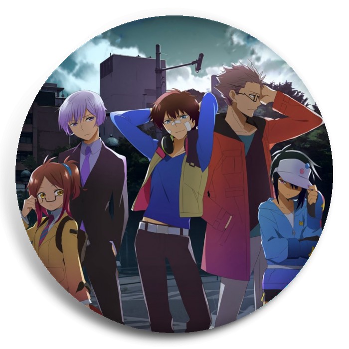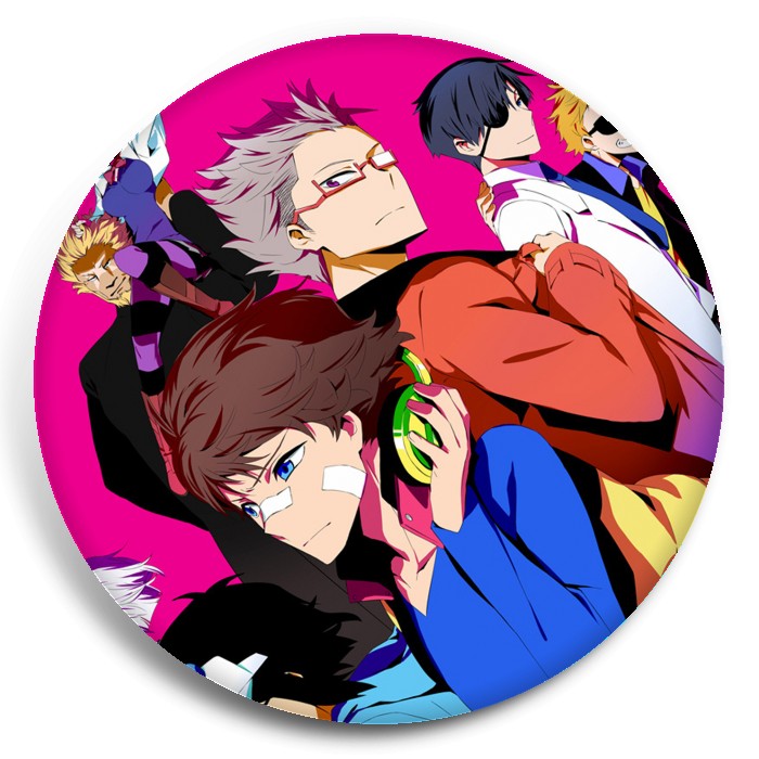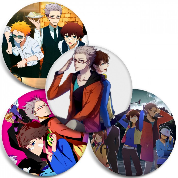 Несколько видов значков с персонажами вселенной Детективное агентство «Хаматора».