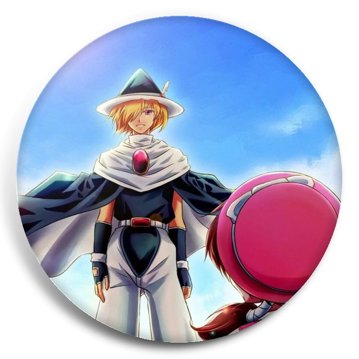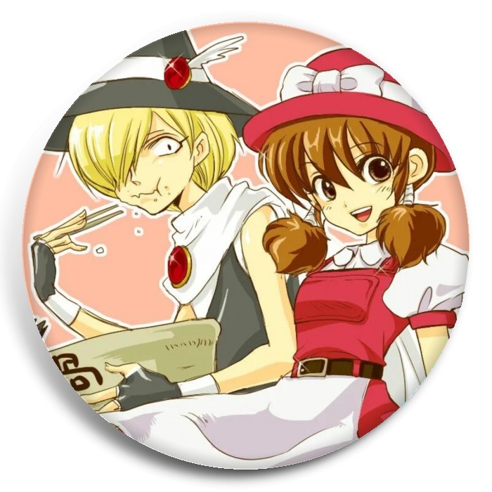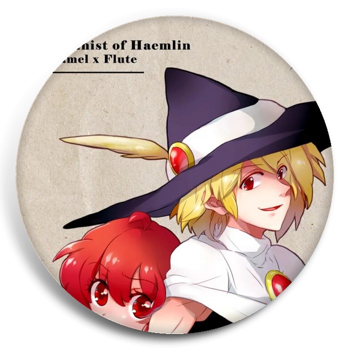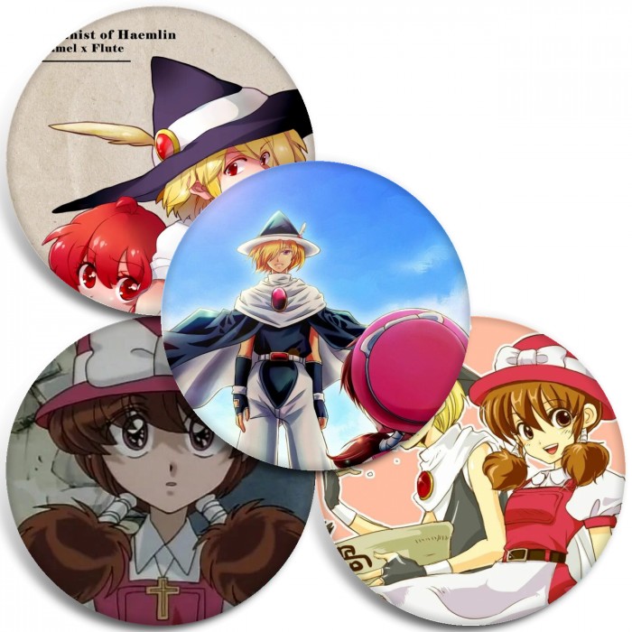 Несколько видов значков с персонажами вселенной Гамельнский скрипач.