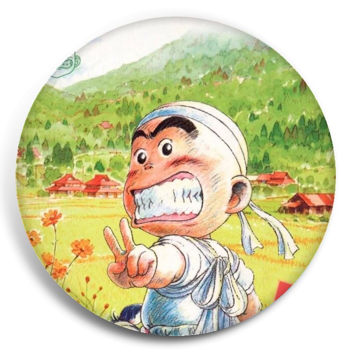 Несколько видов значков с персонажами вселенной История юного Ханады.