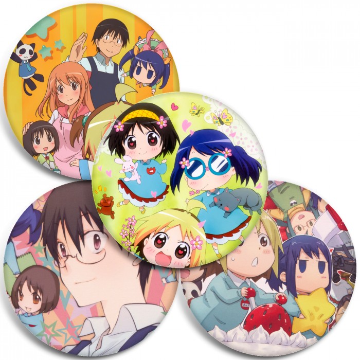 Несколько видов значков с персонажами вселенной Детский сад Ханамару.