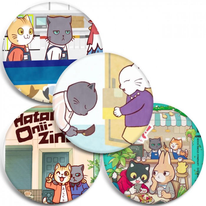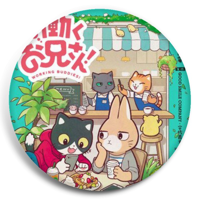 Несколько видов значков с персонажами вселенной Братец на подработке!.