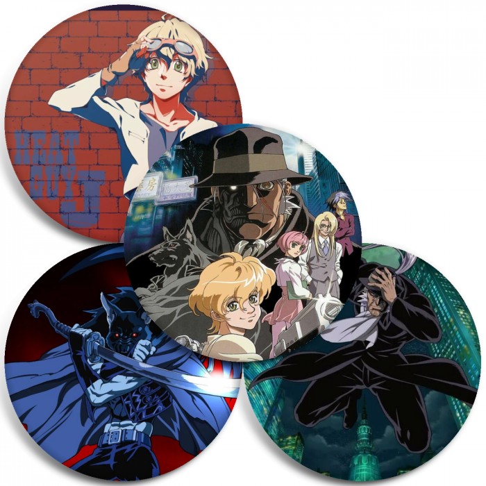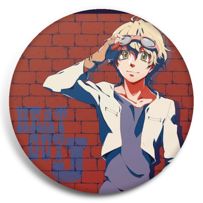 Несколько видов значков с персонажами вселенной Горячий парень Джей.