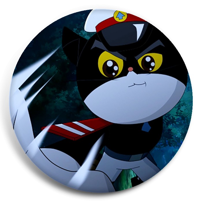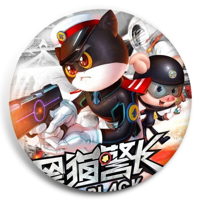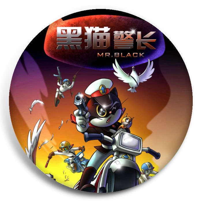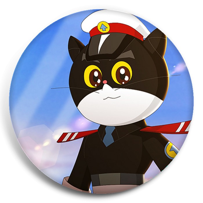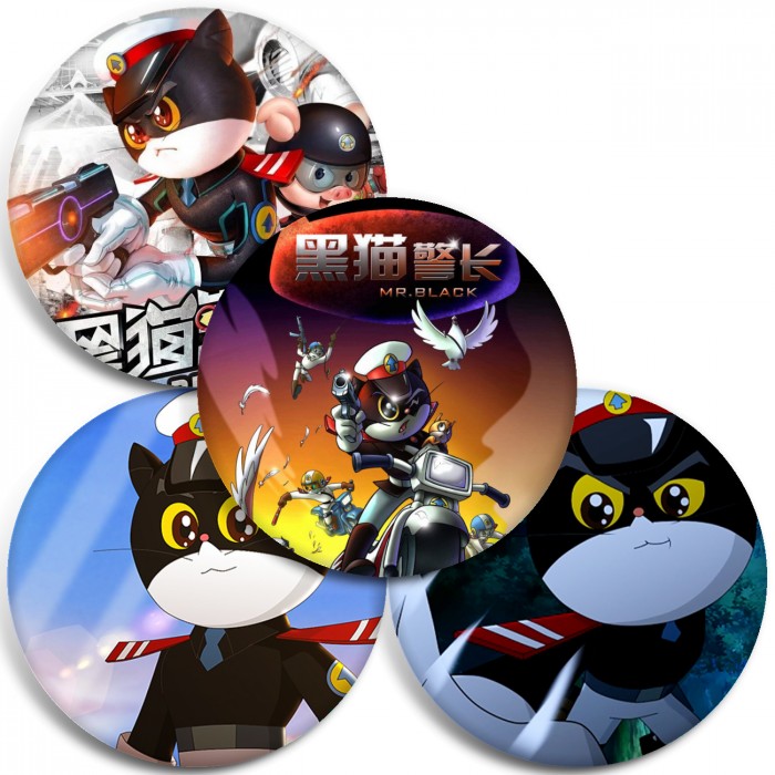 Несколько видов значков с персонажами вселенной Детектив Чёрный кот.