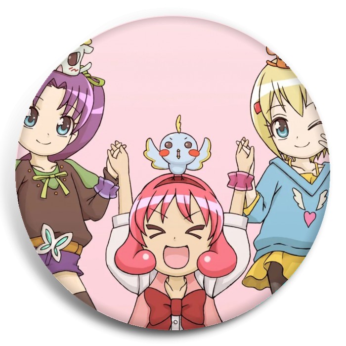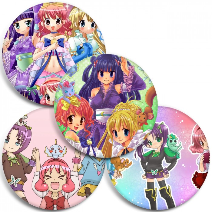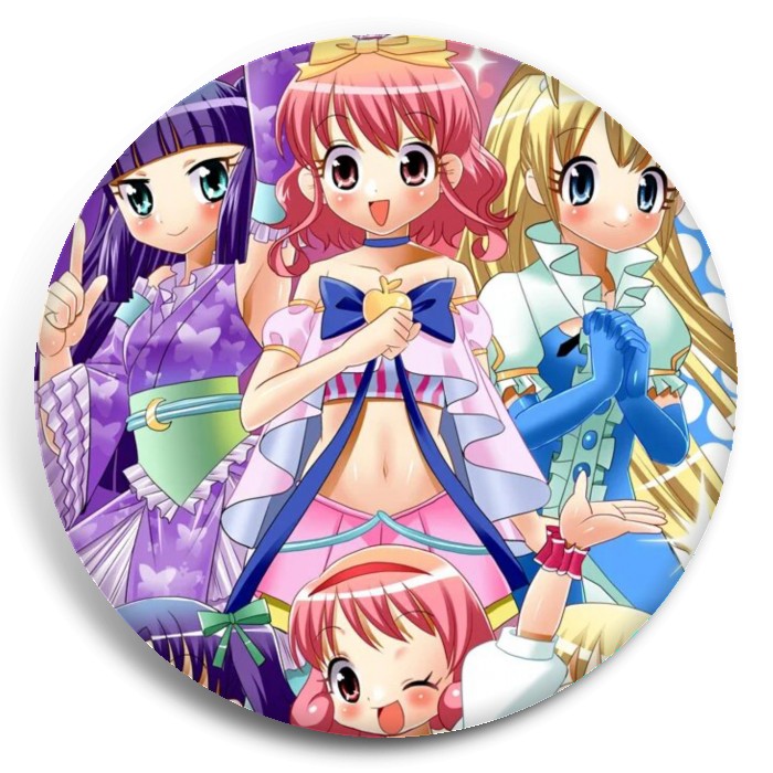 Несколько видов значков с персонажами вселенной Принцессы-идолы.