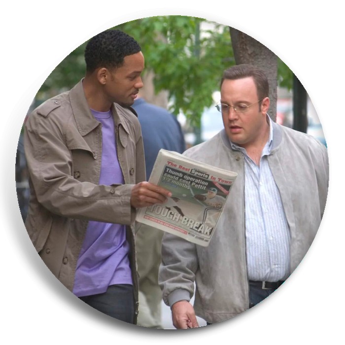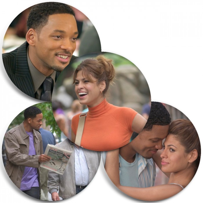 Несколько видов значков с персонажами вселенной Правила съёма: Метод Хитча.