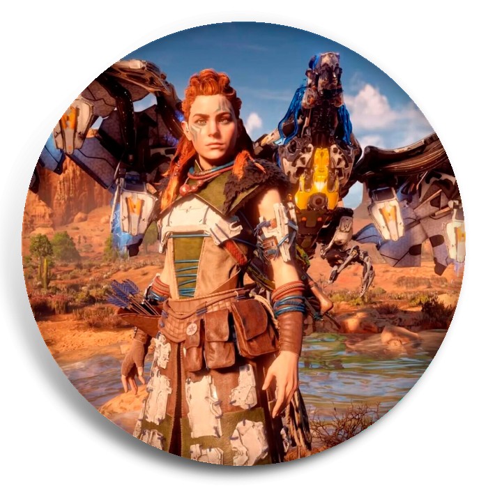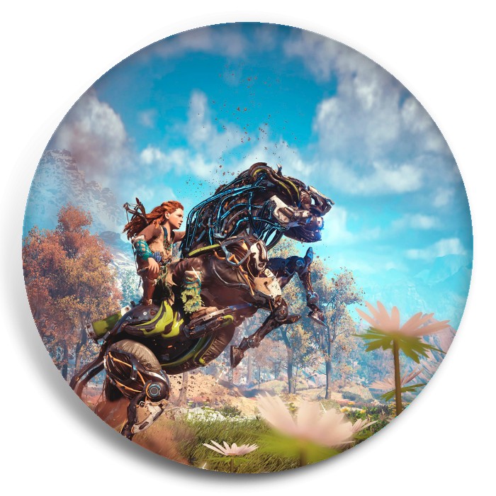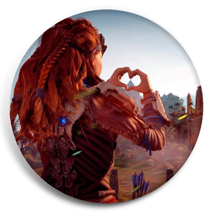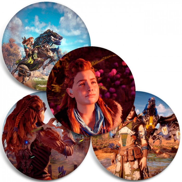 Несколько видов значков с персонажами вселенной Horizon.