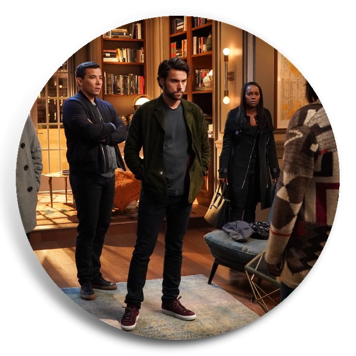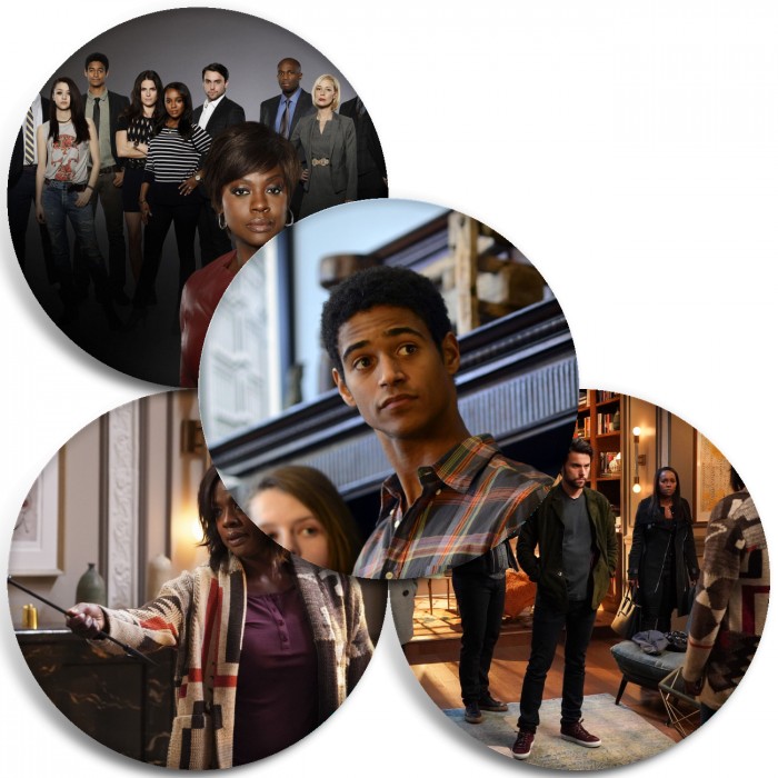 Несколько видов значков с персонажами вселенной Как избежать наказания за убийство.