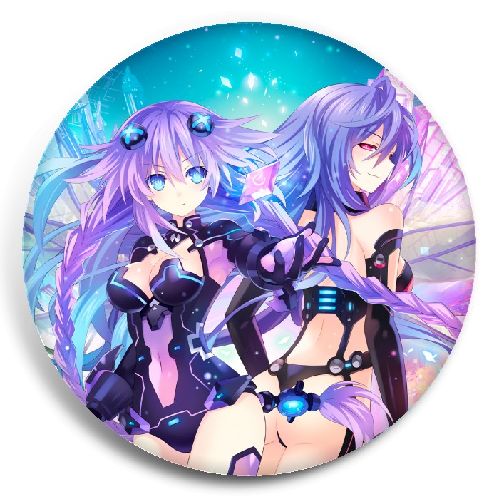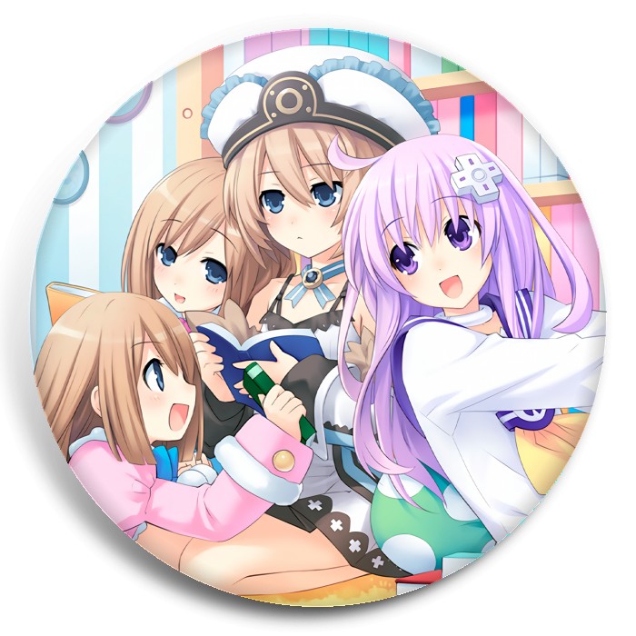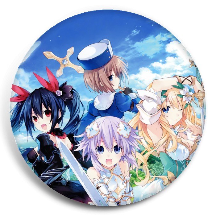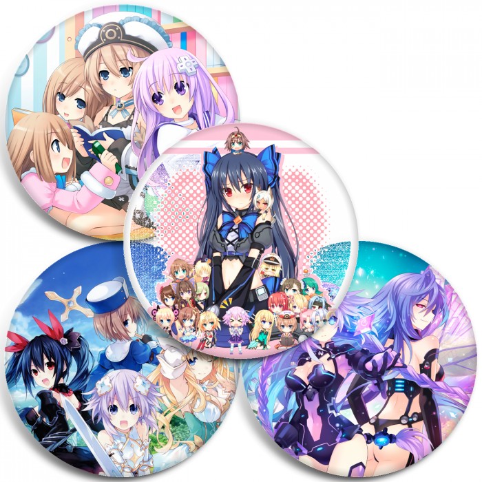 Несколько видов значков с персонажами вселенной Hyperdimension Neptunia.