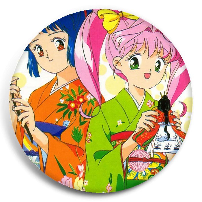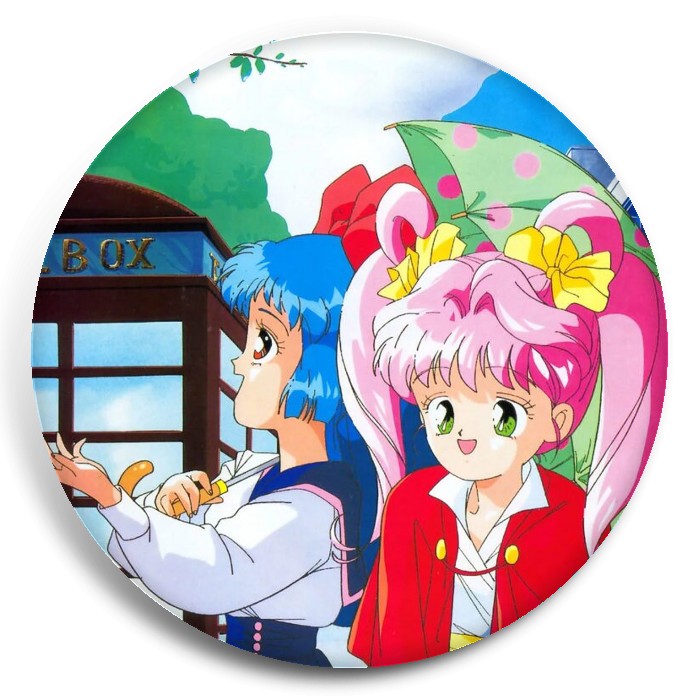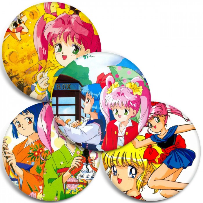Несколько видов значков с персонажами вселенной Ангелочек Ёко: Поп-идол.