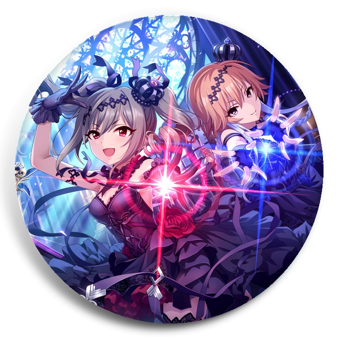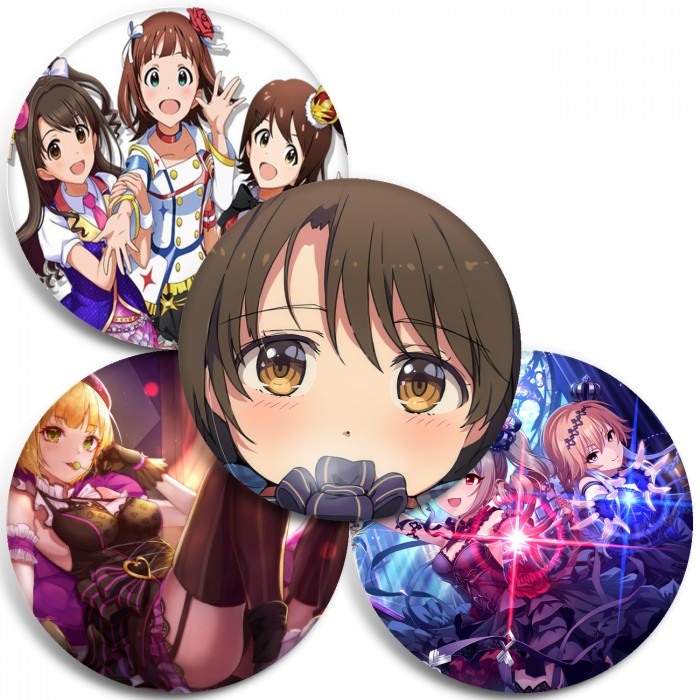 Несколько видов значков с персонажами вселенной Идолмастер.