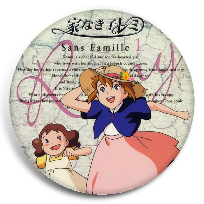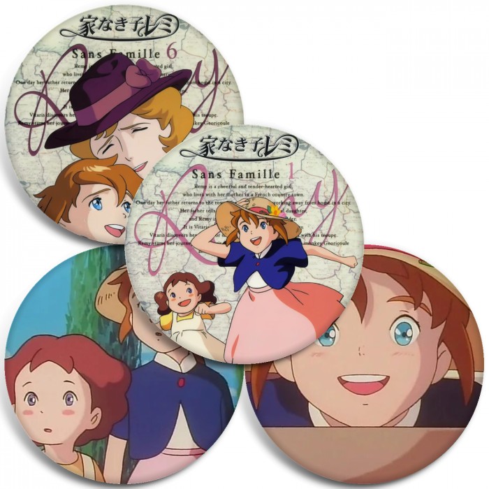 Несколько видов значков с персонажами вселенной Бездомная девочка Реми.