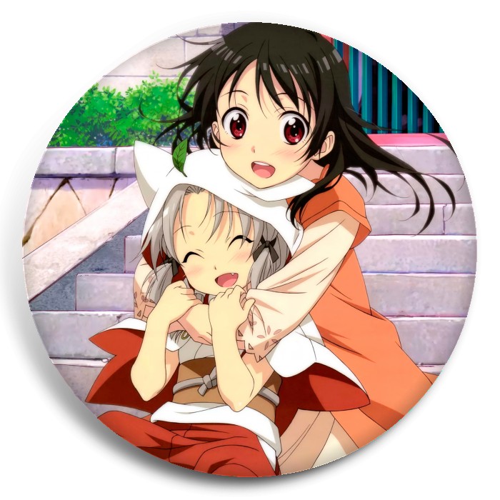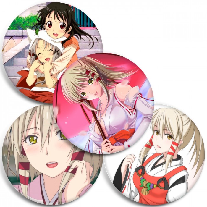 Несколько видов значков с персонажами вселенной Инари; лисицы и волшебная любовь.