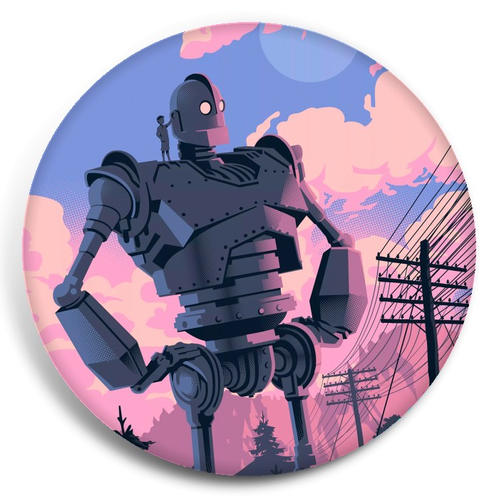 Несколько видов значков с персонажами вселенной Стальной гигант.