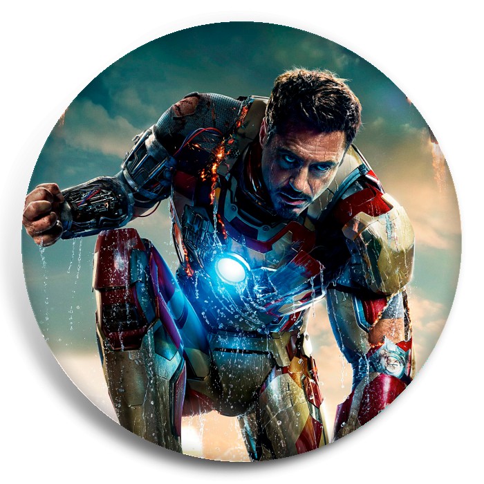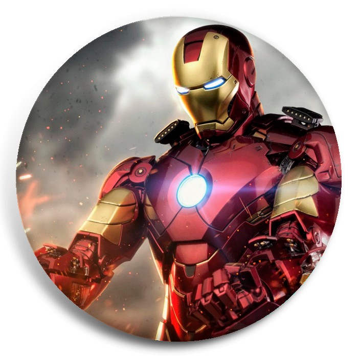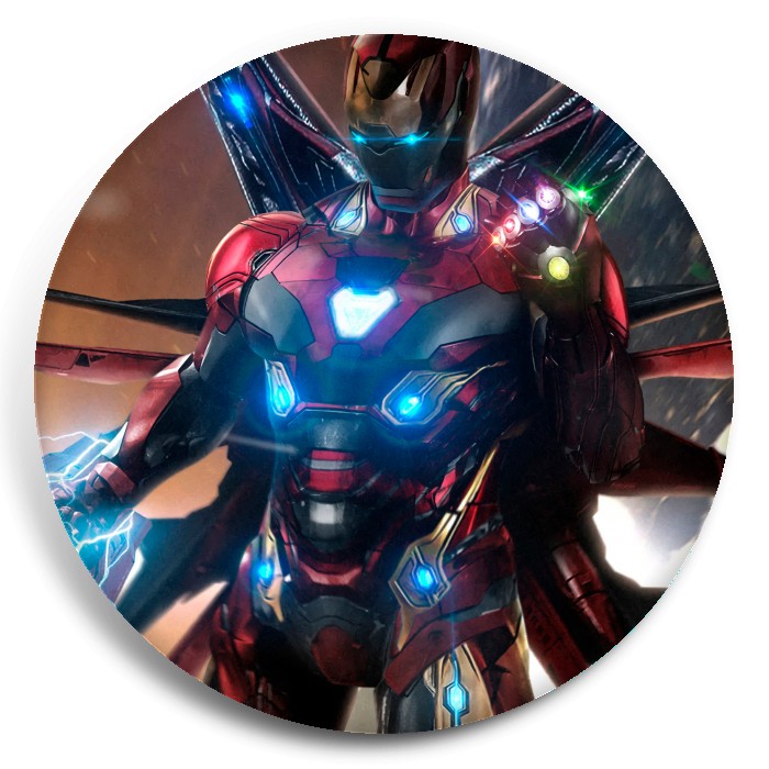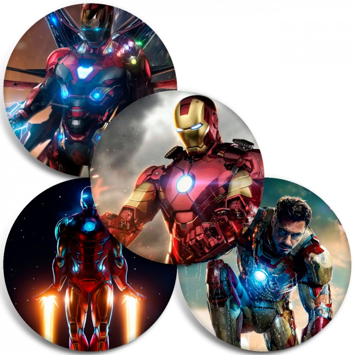 Несколько видов значков с персонажами вселенной Железный человек.