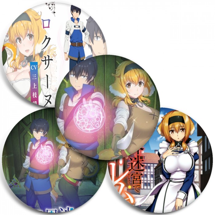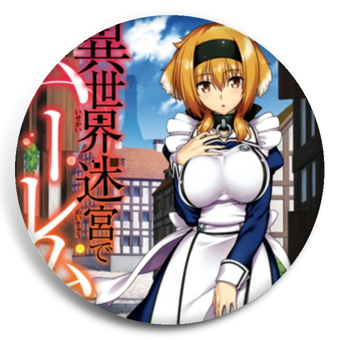 Несколько видов значков с персонажами вселенной Гарем рабов в лабиринте другого мира.