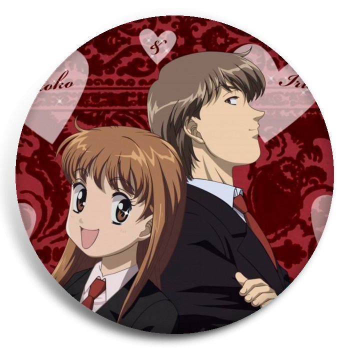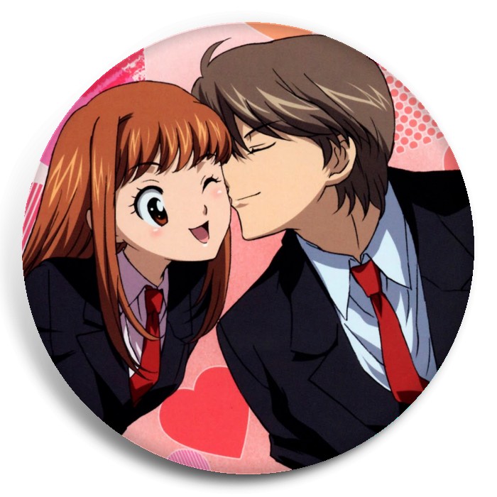 Несколько видов значков с персонажами вселенной Озорной поцелуй.