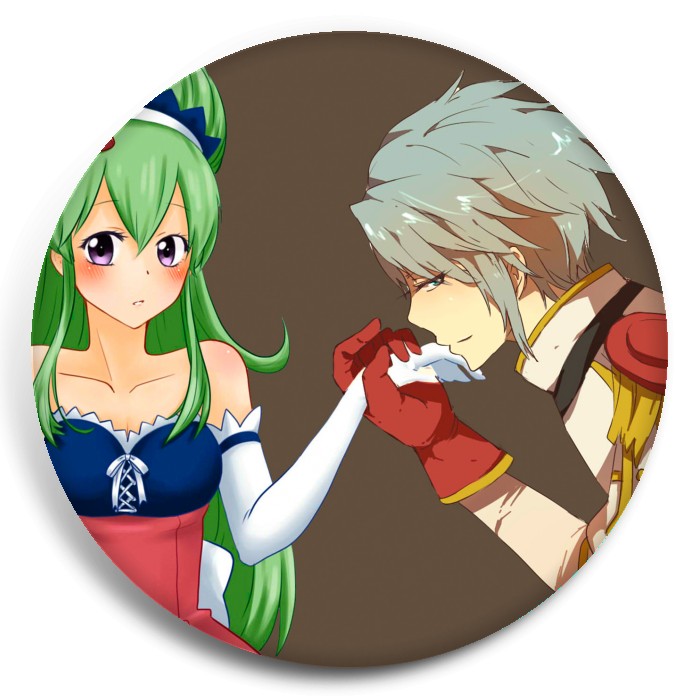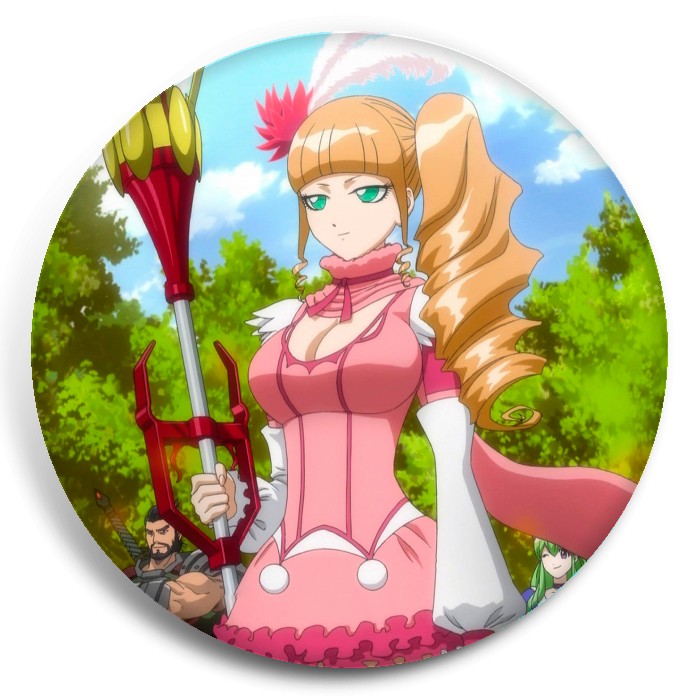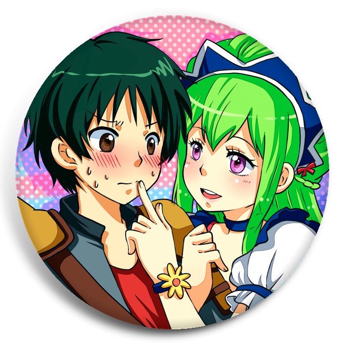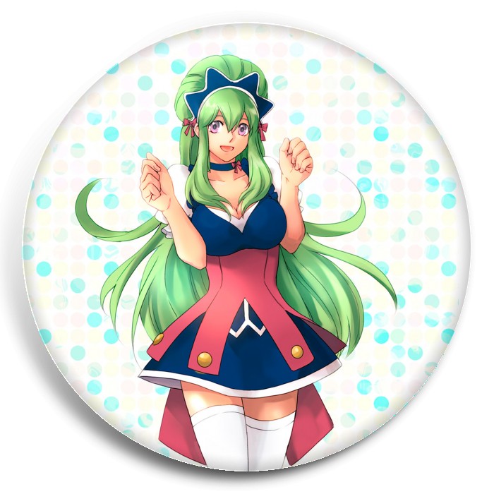 Несколько видов значков с персонажами вселенной Иксион-сага: Другое измерение.