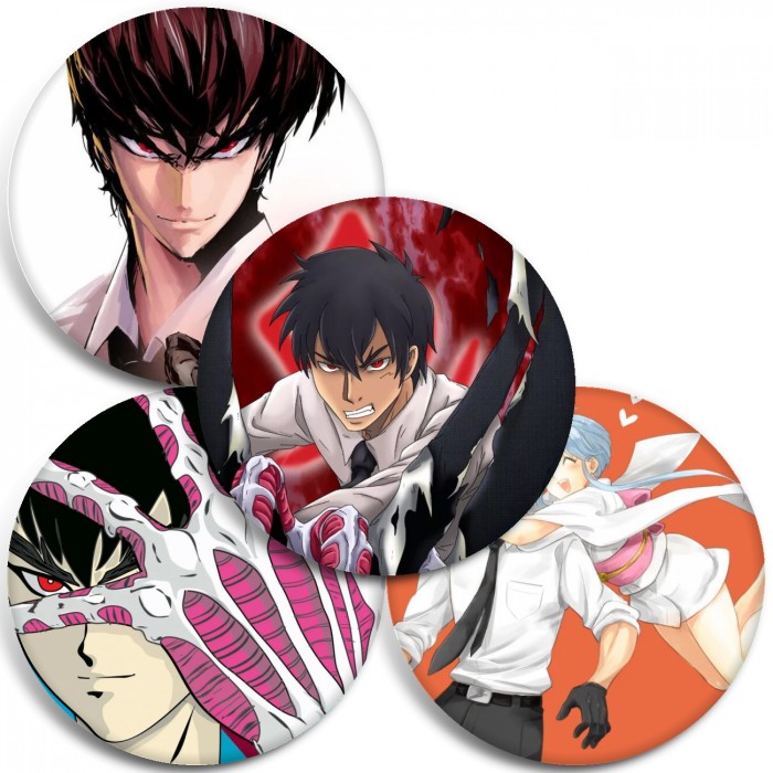Несколько видов значков с персонажами вселенной Адский учитель Нуб.