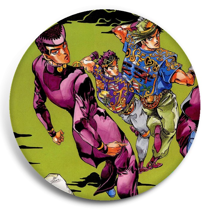 Несколько видов значков с персонажами вселенной Невероятные приключения ДжоДжо.