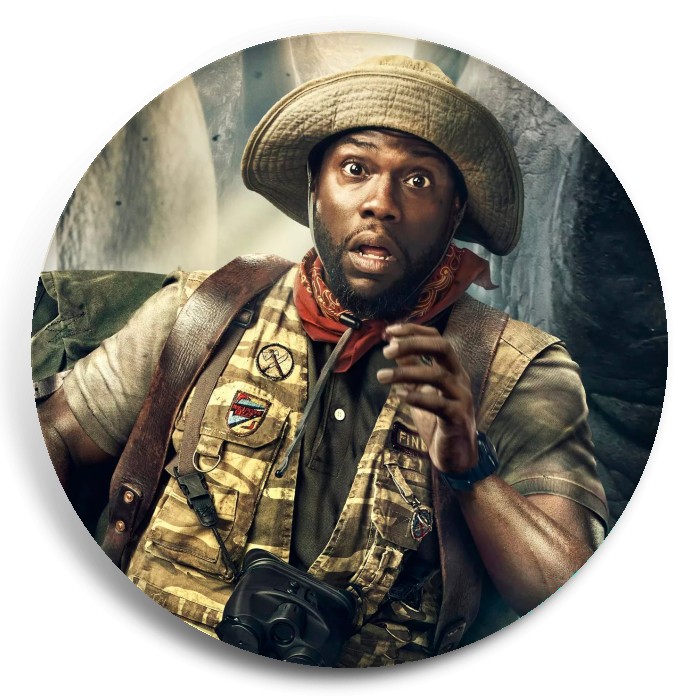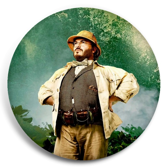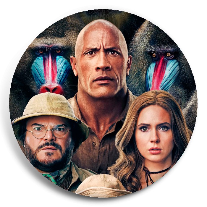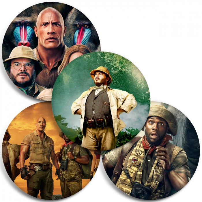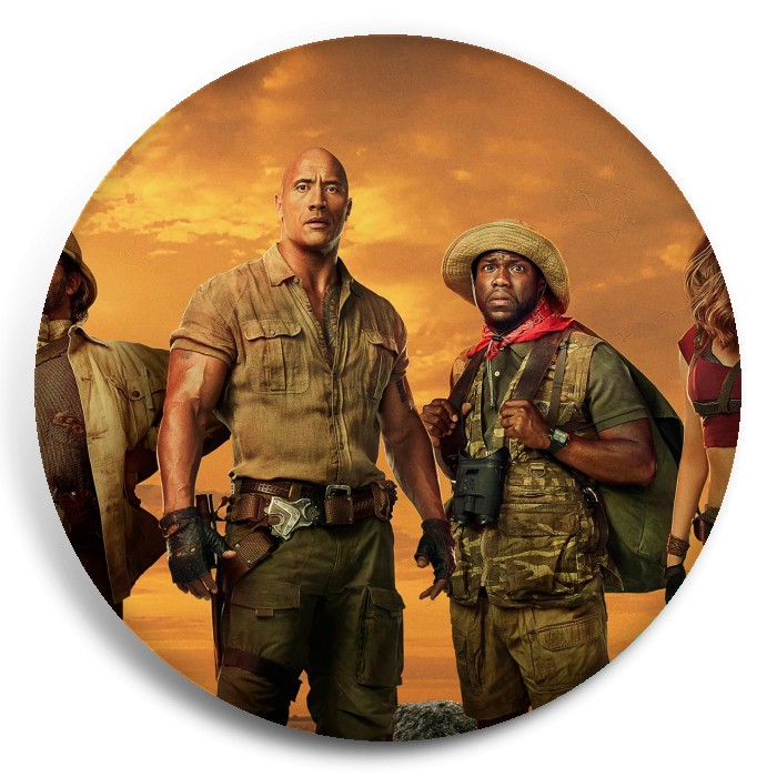 Несколько видов значков с персонажами вселенной Джуманджи.