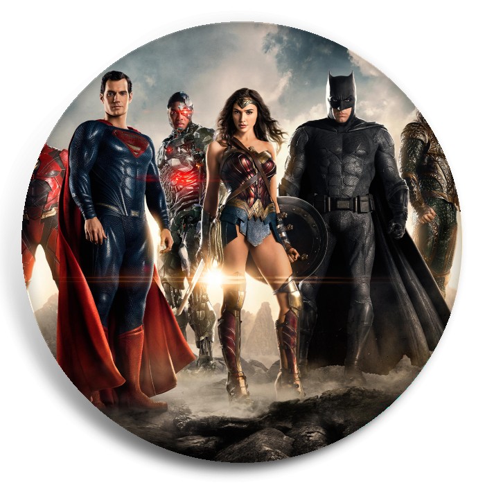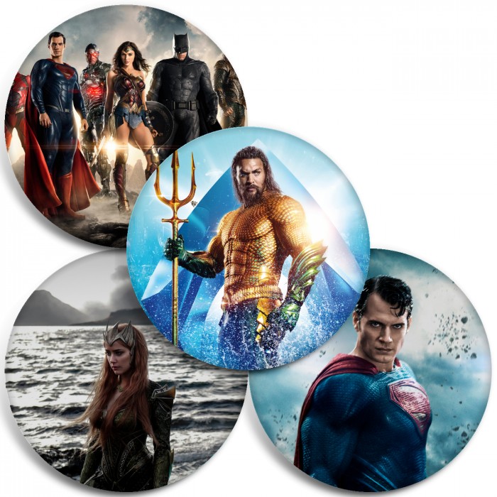 Несколько видов значков с персонажами вселенной Лига справедливости.