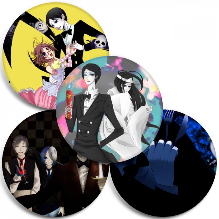 Несколько видов значков с персонажами вселенной Ресторан ужасов.