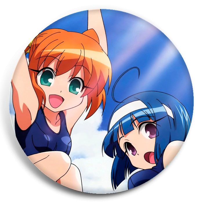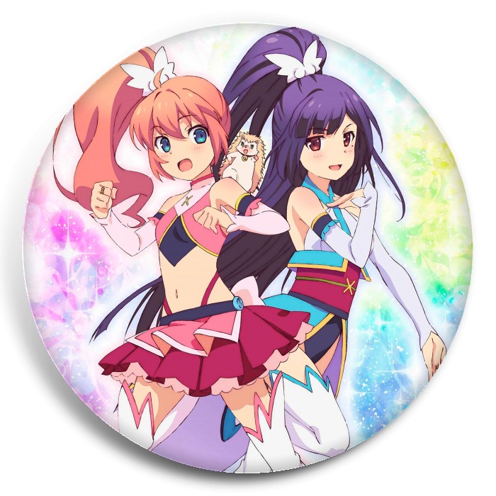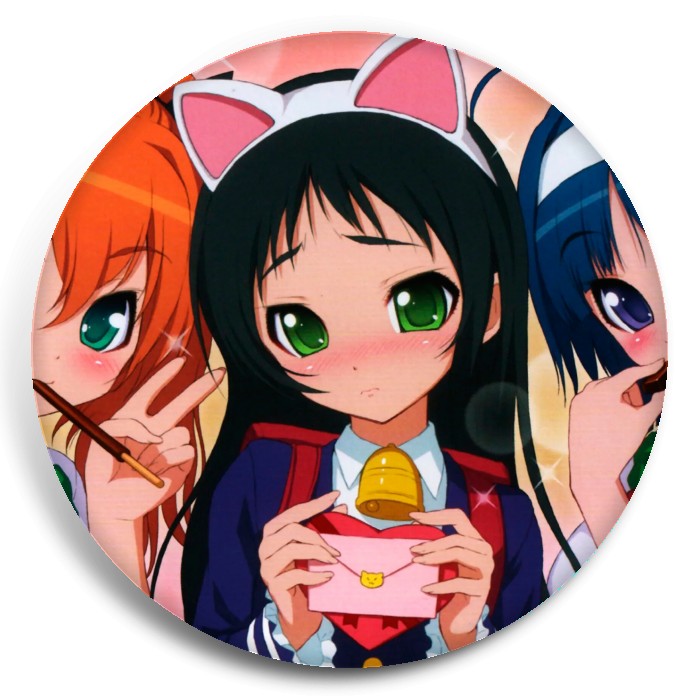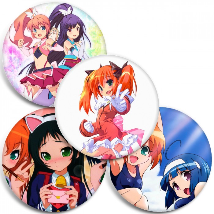 Несколько видов значков с персонажами вселенной Небесные воровки; близняшки-ангелочки.