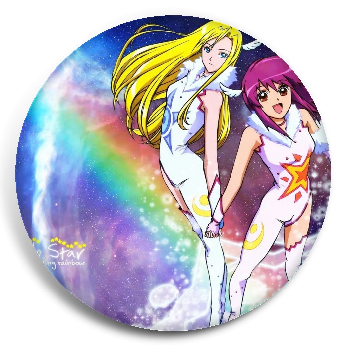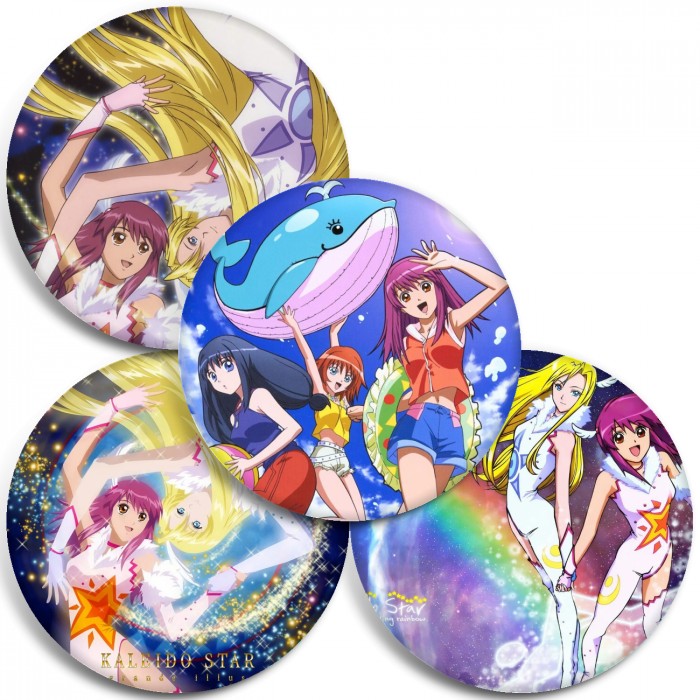 Несколько видов значков с персонажами вселенной Огни Пёстрой арены.