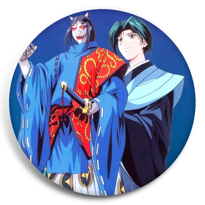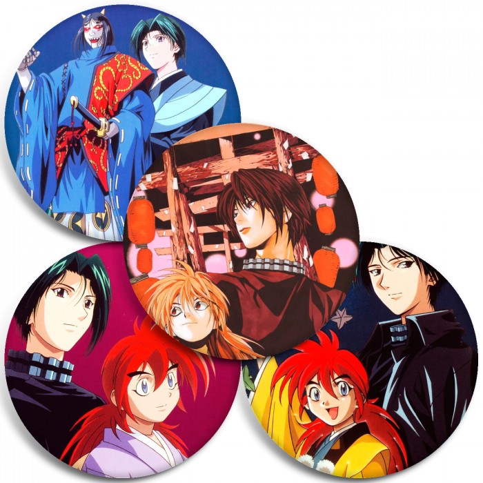 Несколько видов значков с персонажами вселенной Рассказы кукловода Сакона.