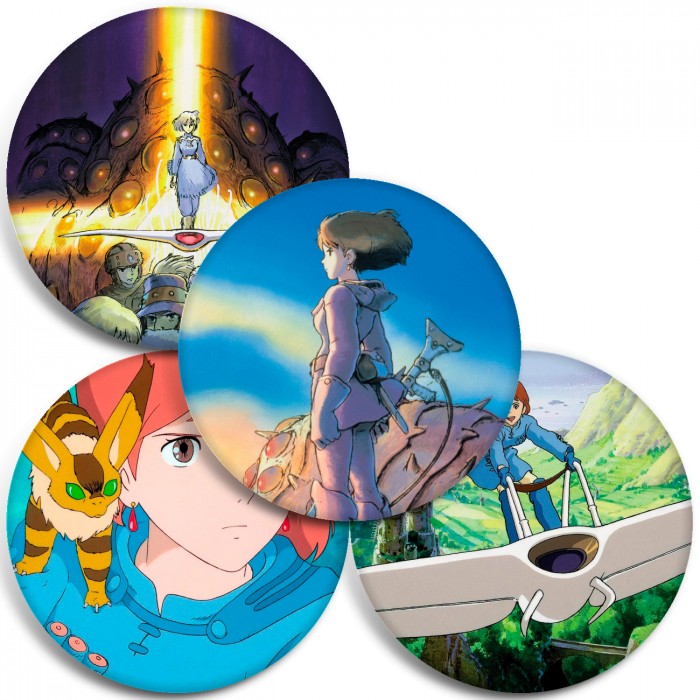 Несколько видов значков с персонажами вселенной Невсикая из долины ветров.