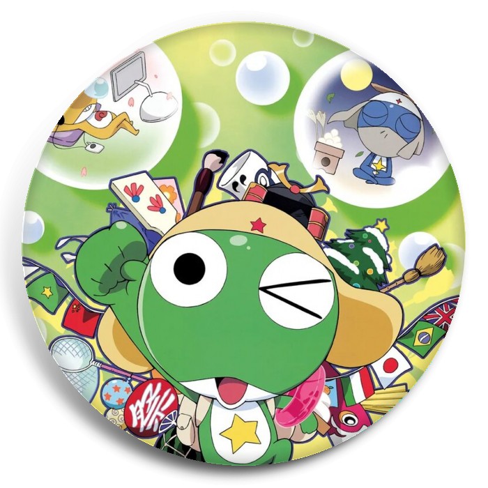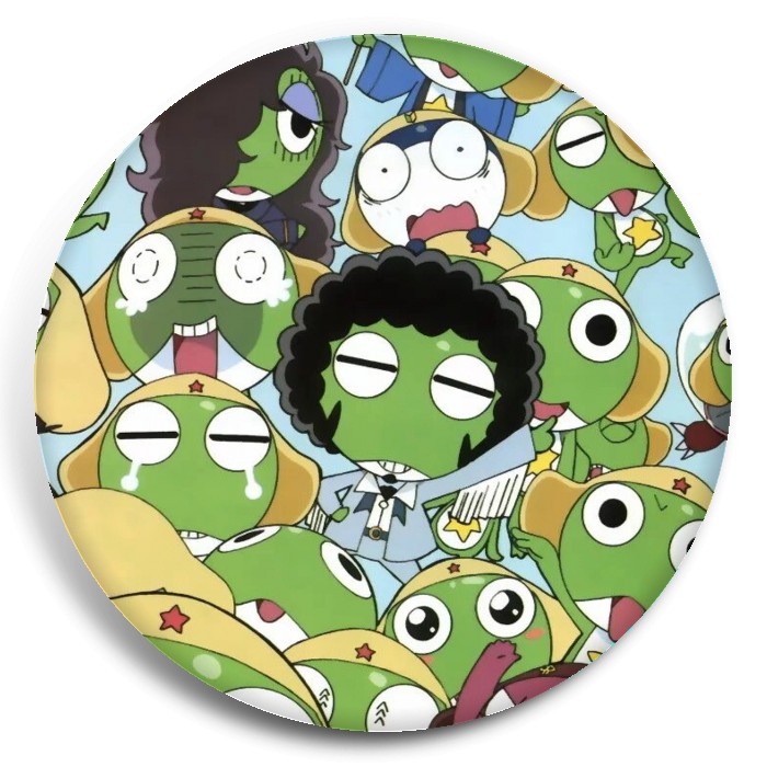 Несколько видов значков с персонажами вселенной Сержант Кэроро.