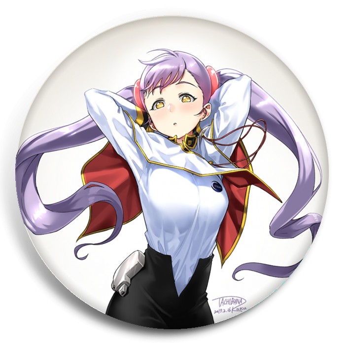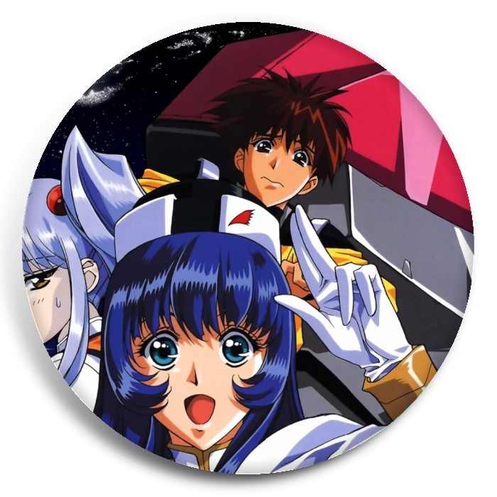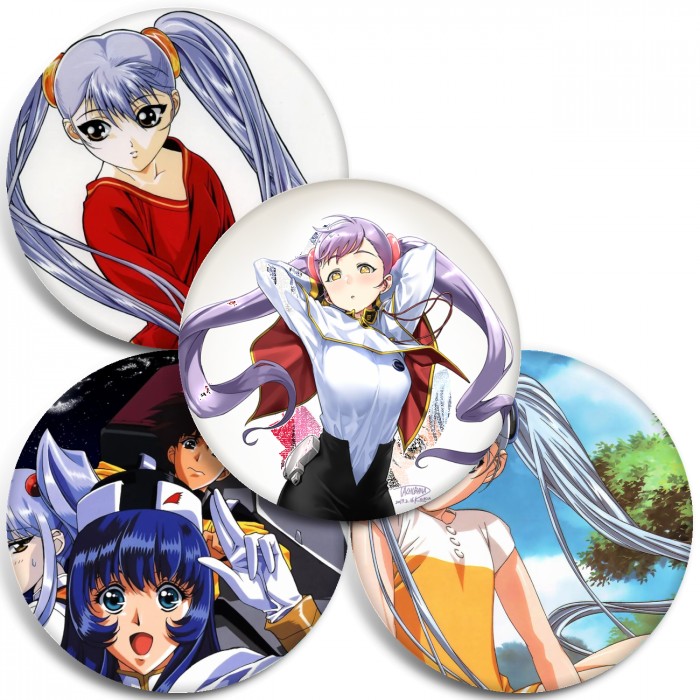 Несколько видов значков с персонажами вселенной Крейсер Надэсико.