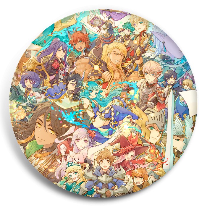Несколько видов значков с персонажами вселенной Королевский рейд: Наследники воли.