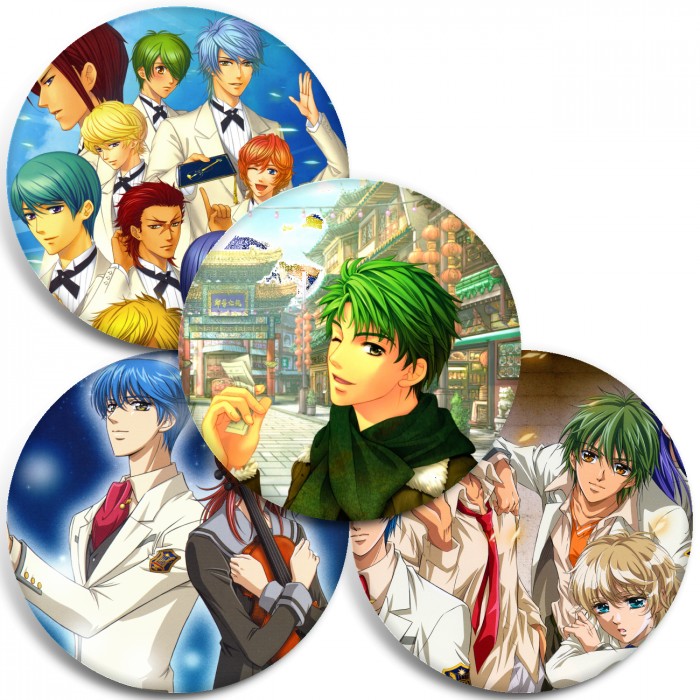 Несколько видов значков с персонажами вселенной Золотая струна.